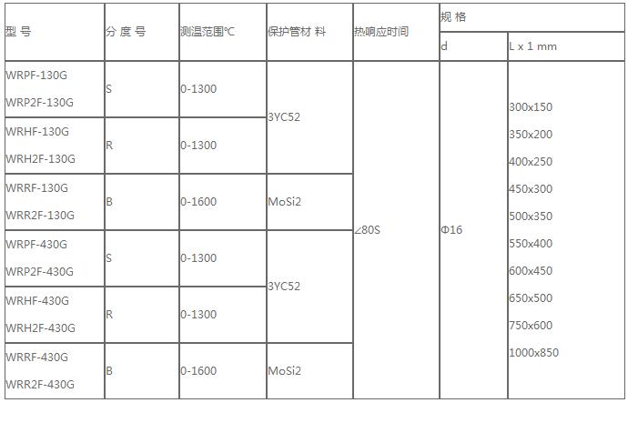耐腐熱電偶型號及規(guī)格