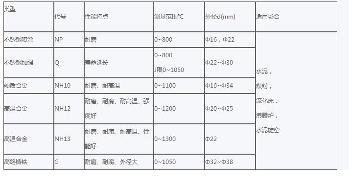 耐磨熱電偶型號(hào)及規(guī)格