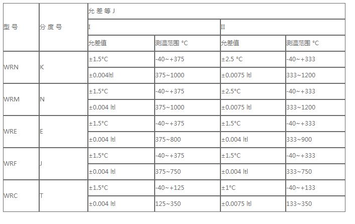 電站熱電阻測量范圍及允差