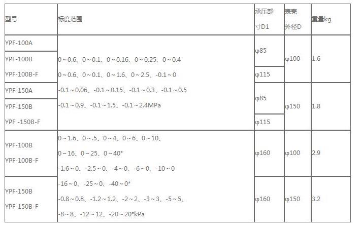 YPF-100B膜片壓力表