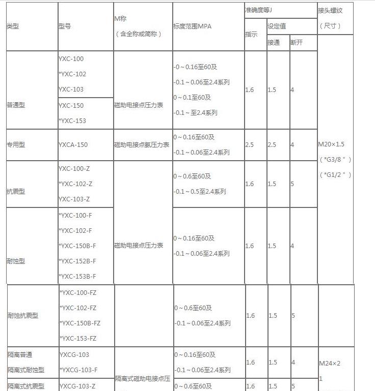 磁助電接點(diǎn)壓力表的主要技術(shù)指標(biāo)功能