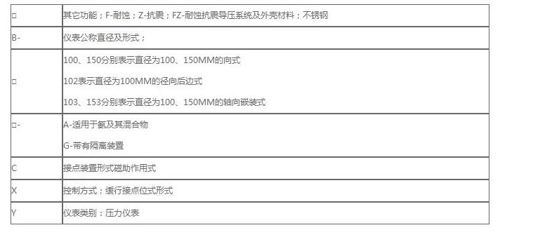 磁助電接點(diǎn)壓力表的型號標(biāo)示