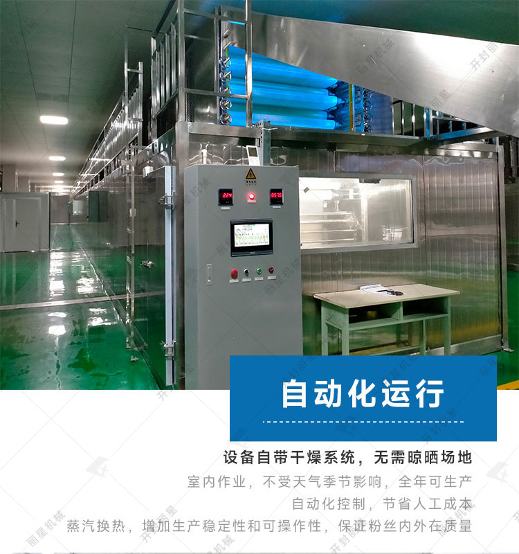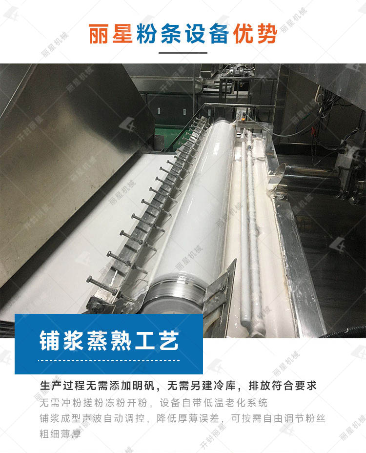 開封麗星生產(chǎn)的日產(chǎn)2-15噸粉條加工設(shè)備,采用鋪漿蒸熟無明礬工藝,自帶低溫老化系統(tǒng)無需開粉沖粉搓粉,自帶烘干系統(tǒng)無需晾曬場地,實(shí)現(xiàn)粉條加工封閉式自動化流水線運(yùn)行。