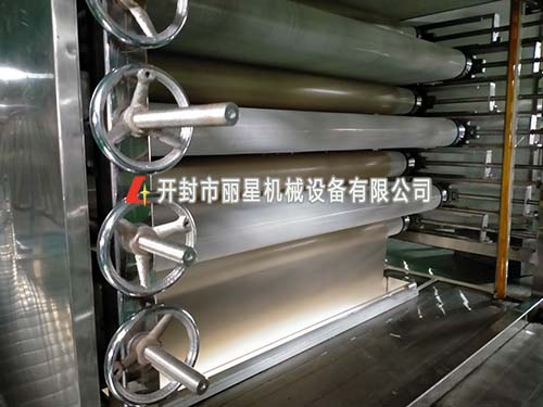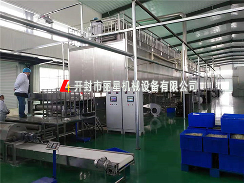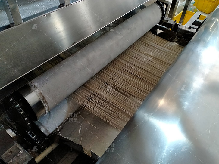 麗星紅薯粉條生產(chǎn)線采用了感應(yīng)鋪漿蒸熟工藝,改變了以往燃煤加熱,采用蒸汽蒸熟,然后進(jìn)行冷卻脫離,進(jìn)行低溫老化,設(shè)備本身自帶了冷庫,老化后直接進(jìn)入冷庫冷凍;涂布式的粉條加工設(shè)備配套了烘干裝置,不需要室外晾曬,加工粉條定長橫切,長短一致,粗細(xì)均勻,成品出機(jī)即可包裝。